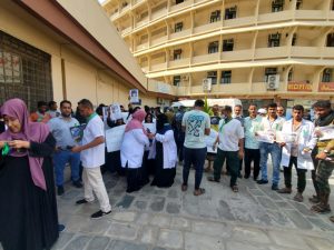 اصطفاف الموظفين في مستشفى الصداقة بعدن خلف المدير العام لافشال الساعين لتدمير ماتحقق من نهضة طبية.