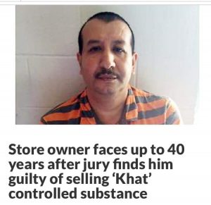 أعلن المدعي العام في ولاية مسيسيبي الامريكية، جيم هود، يوم الجمعة 31 مايو 2019، أن مالك محل (يمني) يدعى محمد ناجي في ولاية مسيسيبي يواجه عقوبة بالسجن قد تصل الى أربعين عاماً، وذلك بعد إدانته بالاتجار بالقات.