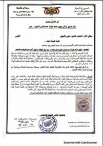 وقال الدكتور أحمد انعم في رسالة رسمية الى النائب العام الدكتور علي الأعوش بان الموظف المدعو نشوان الحسام قام بتزوير ختم باسم المستشفى.