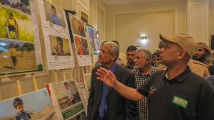 من جانبه قدم الأستاذ امين شمسان من المنظمة الشريكة في اقامة المعرض (ميون) لحقوق الانسان تقرير المنظمة الحقوقي الذي تم من خلاله رصد جريمة تجنيد الأطفال التي أقدم عليها الحوثيون من 1 يونيو2021 وحتى 31 ديسمبر 2022..داعيا المجتمع الدولي الوقوف أمام هذه الانتهاكات اللاانسانية للمتمردين الحوثيين تجاه المدنيين.