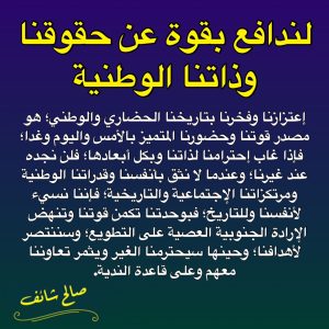صالح شائف: لندافع بقوة عن حقوقنا وذاتنا الوطنية