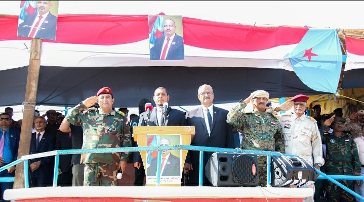 شهد الأمين العام للأمانة العامة لهيئة رئاسة المجلس الانتقالي الجنوبي، عضو هيئة الرئاسة الأستاذ فضل الجعدي، ومعه محافظ محافظة سقطرى أ. رأفت الثقلي اليوم عرضاً عسكرياً مهيباً للقوات المسلحة الجنوبية في معسكر اللواء الأول مشاه بحري أحتفاءً بالذكرى السادسة والخمسون لعيد الاستقلال الوطني المجيد الثلاثين من نوفمبر.