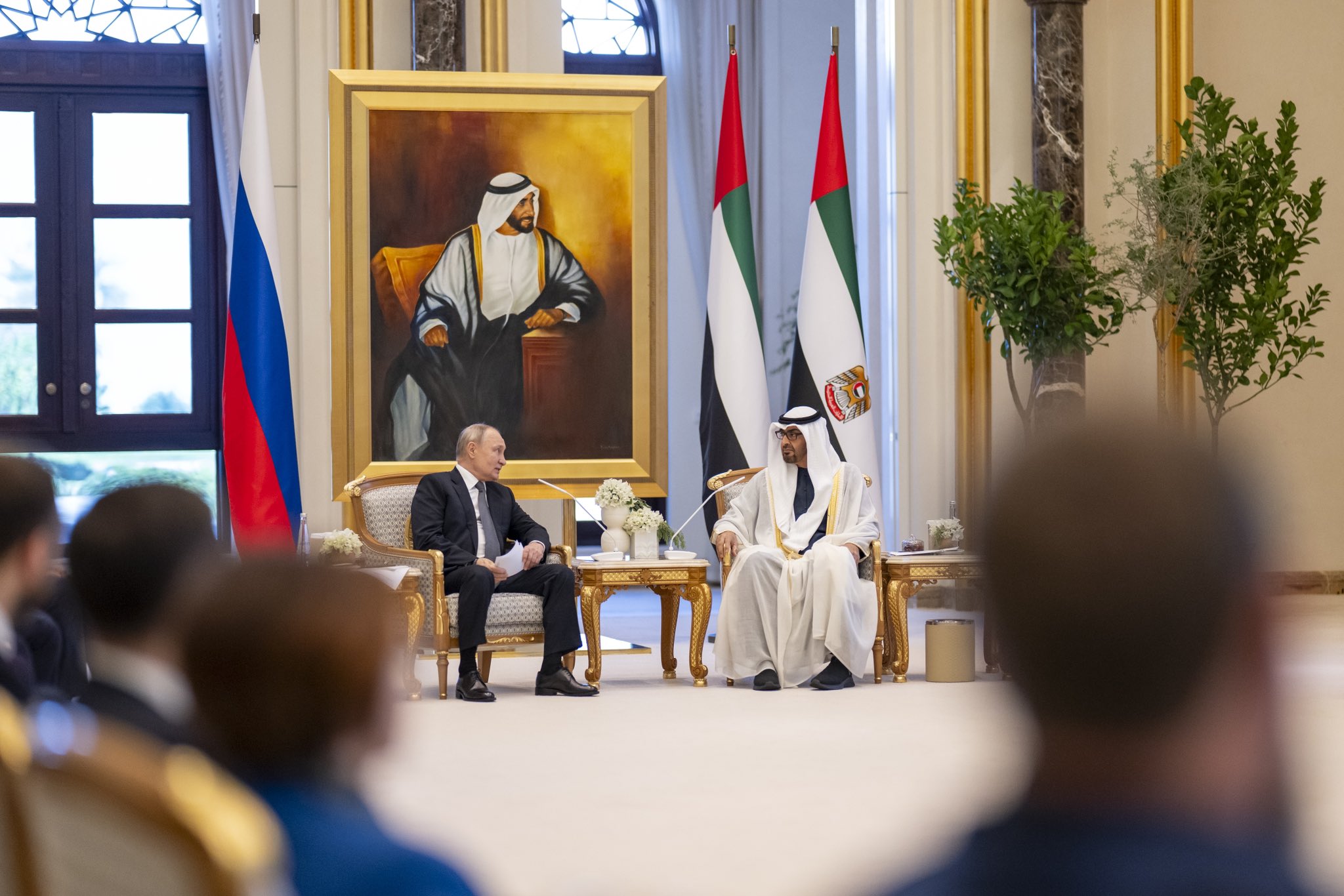 وبحث محمد بن زايد وبوتين سبل التعاون والوضع في الشرق الأوسط، في وقت تدور حرب شرسة في قطاع غزة بين إسرائيل وحركة حماس.