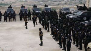 وشهد الحفل عرض عسكري مهيب استعرض فيه ابطال الجهاز مهاراتهم القتالية والفنية والبدنية التي تلقوها خلال فترة التدريب تمهيدا لنقلها إلى ميدان المعركة لمكافحة الإرهاب وتجفيف منابعه .