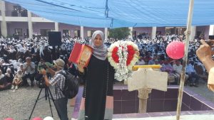 وتحدثت الأستاذة إيمان موسى قائلة ” انه لشرف لها واعتزاز بما قدمتوه وانها تغمرها السعادة والفرح بطاقم التي انعكست اعمالهم على بناتنا وفلذات اكبادنا التي افتخر بهن وشكر وتقدير لكل من ساهم لوصول مجمع خديجة بنت خويلد في الصدارة والتفوق والابداع والتمييز وجعلها رمز على مستوى مدارس المنصورة خاصة ومحافظة عدن عامة ” .