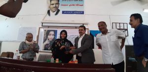 كرم بعدها رئيس القيادة المحلية رمزي الشعيبي في قاعة كلية التربية صبر الشاعرة المبدعة صابرين الحسني نظير ما أحرزته من جوائز أدبية عربية في مضمار الشعر العربي وهو ما أضافته من إبداعات وتميزات لوطننا الجنوبي .