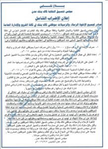 وقد دعا البيان جميع الموظفبن للتضامن مع الإضراب نظرا للتعسف الذي يواجهونه من إدارة البنك وممارستها للتمييز السلبي، كما ذكر البيان،ومماطلتهم في إعطائهم حقوقهم الوظيفية .