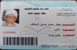في إطار اهتمامات اتحاد أدباء وكتاب الجنوب بالمبدعين الجنوبيين من أدباء وكتاب .التقى الأستاذ حسين حسن السقاف نائب رئيس الاتحاد بمحافظة حضرموت والأستاذ هشام الرباكي المسؤول التنظيمي للفرع صباح اليوم السبت 24 / مارس / 2020 في سيؤن بالمؤرخ الكبير والأديب الشاعر جعفر محمد السقاف ( ابوكاظم) في مركزه الخاص بالتوثيق التاريخي . واثناء الزيارة تقدم الاتحاد بتسليم البطاقة رقم 1 لعضوية الاتحاد للسيد جعفر باعتباره رمزا من رموز الكتابة والتاريخ والأدب الجنوبيين والذي تجاوز سنه المائة عام تقديرا وتكريما من اتحاد أدباء وكتاب الجنوب لهذه القامة التاريخية .