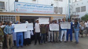 اضرابهم ووقفتهم الإحتجاجية للإسبوع الثاني ,للمطالبة بحقوقهم ومستحقاتهم ويناشدون محافظ عدن احمد لملس بتشكيل لجنة للتحقيق في فساد إدارة مستشفى الجمهورية., وكما عبر المعتصمون انهم يعانون من تردي الخدمات وسوء معاملة الادارة لهم وفسادها.