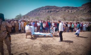 وسار موكب التشييع الحزين من مسشتفى النصر وسط مدينة الضالع مرور بشارع المدينة العام حتى مقبرة الوداد جنوب المدينة والتي اقيمت فيها الصلاة على الشهيد ووري جثمانه الطاهر الثرى .