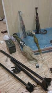 وأضاف اليهري أنه عثر بداخل الباص تحت المقعد الذي كان يجلس عليه الشخص المتنكر على أسلحة متنوعة وذخائر ولوات حرارية وقذائف أربيجيه وغيرها.