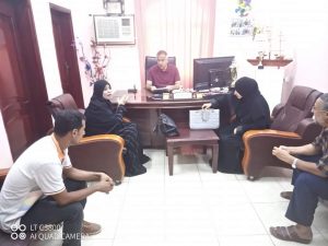 التقي الاستاذ عبدالرحيم جاوي مدير عام مديرية المعلا في مكتبه صباح اليوم بإدارة مركز الطفولة الامنه ممثلة بالاستاذه سميحه عبدالله مبارك مديرة المركز وانشراح حسين الجابري..