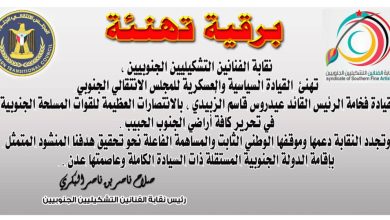 نقابة الفنانين الشكيليين الحنوبيين تهنى القيادة السياسية الجنوبية انتصارات القوات الجنوبية