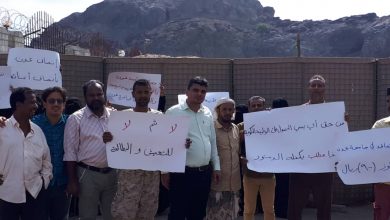 وقفة احتجاجية لمتعاقدي جامعة عدن امام قصر المعاشيق