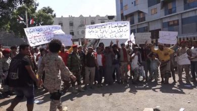 تواصل الاحتجاجات لمنتسبي المنطقة العسكرية الرابعة أمام بوابة قصر المعاشيق