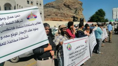 موظفو النفط بعدن يتظاهرون أمام محكمة نظر دعوى استعادة كالتكس