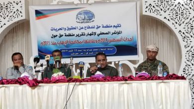 *منظمة حق للدفاع عن الحقوق والحريات تعقد المؤتمر الصحفي لإشهار تقريرها حول أحداث أغسطس 2019 في عدن و علاقتها بجذور محاربة الإرهاب منذ 2015م