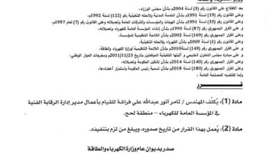 وزير الكهرباء يعيد الاعتبار لمهندس جنوبي ويعينه مديرا فنيا لمنطقة كهرباء لحج..