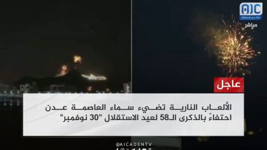 عاجل: عدن المستقلة.. الألعاب النارية تضيء سماء العاصمة عدن احتفاءً بالذكرى الـ58 لعيد الاستقلال “30 نوفمبر”