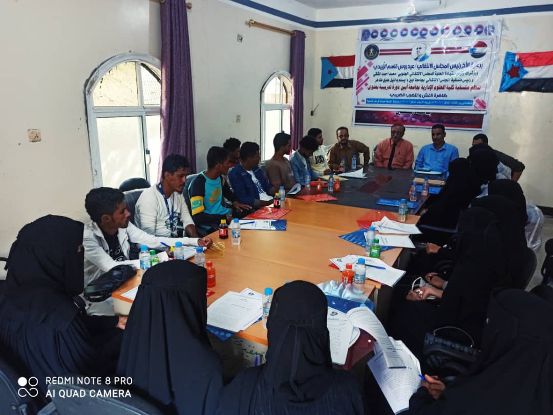 منسقية كلية العلوم الإدارية بجامعة أبين تدشن دورة تدريبية بعنوان: ظاهرة الغش والتهرب الضريبي.