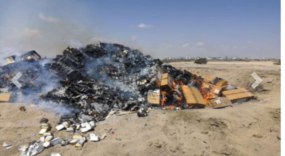وتمَ الإتلاف عن طريق اللجنة الأمنية ومندوبي جهات الضحايا شباب تنسيق مع مدراء عموم الهيئة العُليا للأدوية وجمارك وشرطةالمنطقة الحرة.