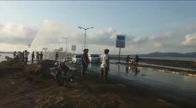 انفجار انبوب مياة يغذي عدد من مديريات العاصمة عدن