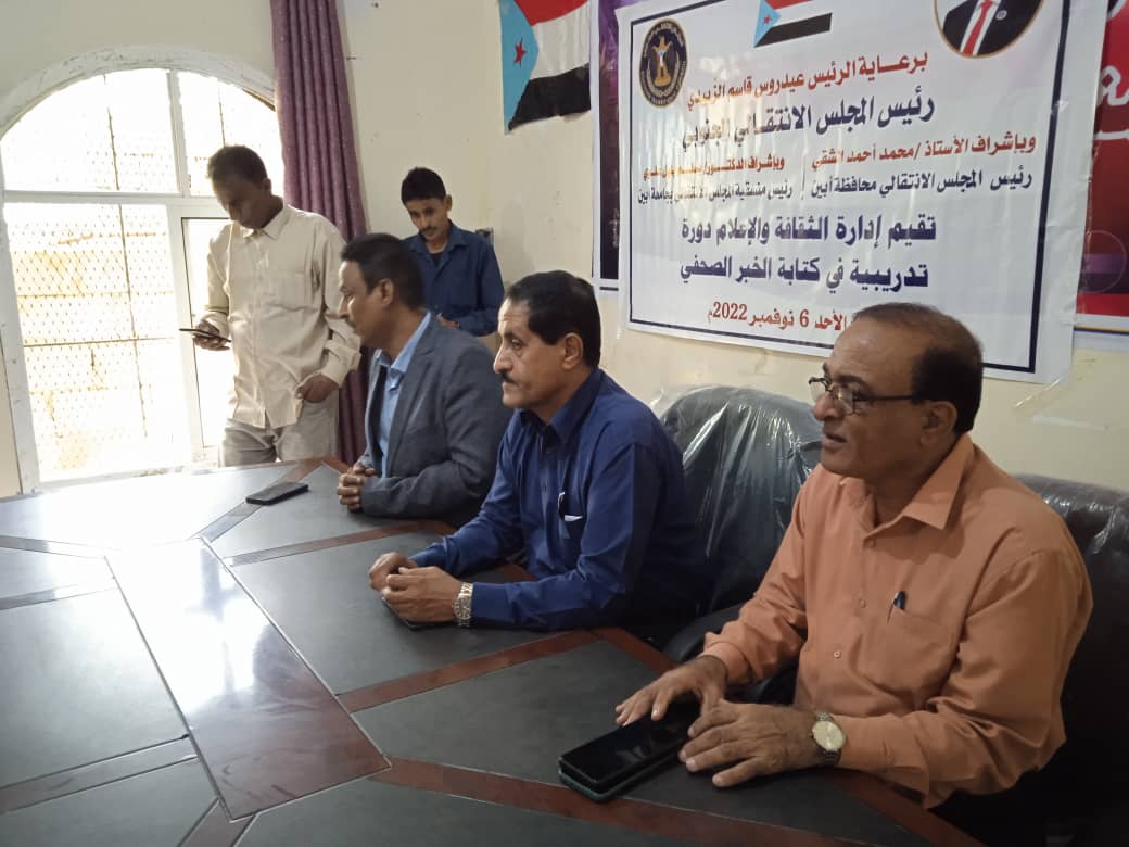إدارة الثقافة والإعلام بمنسقية انتقالي أبين تنظم دورة تدريبية في كتابة الخبر الصحفي