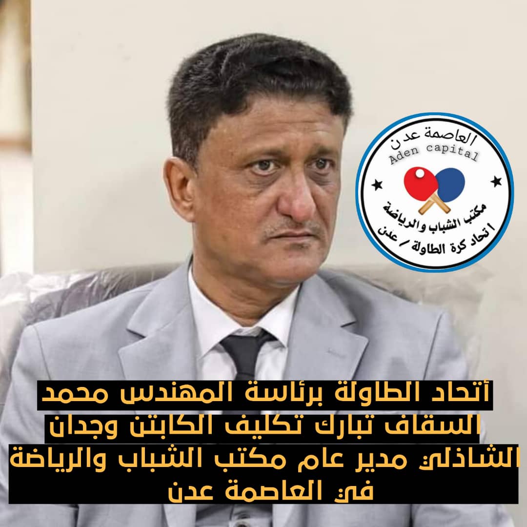 بعث المهندس/محمد السقاف، رئيس اتحاد لعبة كرة الطائرة بالعاصمة الجنوبية عدن تهنئته الممزوجة بالتباريك للكابتن (وجدان الشاذلي) بمناسبة تعينه مديرا لمكتب الشباب والرياضة للعاصمة الجنوبية عدن.