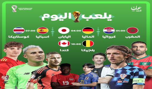وتقام اليوم أربع مباريات تعد بالكثير من الندية والإثارة في كأس العالم 2022، لحساب المجموعتين الخامسة والسادسة.