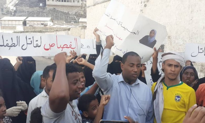 العاصمة عدن تظاهر شعبية حاشدة أمام حديقة فكتوريا مطالبة بإعدام قاتل الطفلة ” مها باسم ”