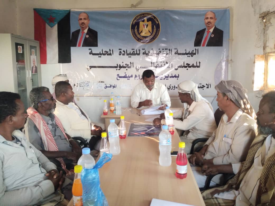 عقدت الهيئة التنفيذية للقيادة المحلية للمجلس الانتقالي الجنوبي بمديرية بروم ميفع ، بمحافظة حضرموت، مساء