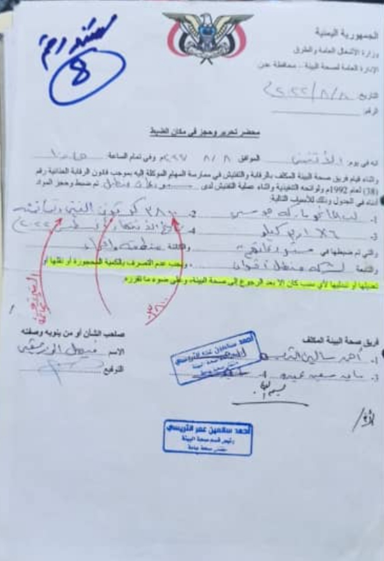 وطالبت مصادر حقوقية، الجهات المعنية على رأسها صحة البيئة في عدن، بتنفيذ حملات نزول ميداني، وسحب اي كمية يتم الحصول عليها في مخازن ومحال التجار، وتحريزها، دونما الحاق اضرار بالتجار لعدم معرفتهم بعملية التزوير، بقدر محاسبة الشركة التي تقف وراء عملية التزوير.