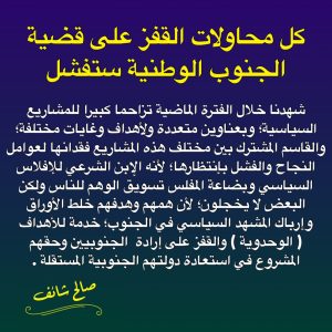 أ/ صالح شائف : كل محاولات القفز على قضية الجنوب الوطنية ستفشل