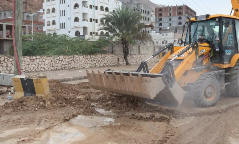لجنة طوارئ حضرموت تشرع في إزالة مخلفات المنخفض الجوي