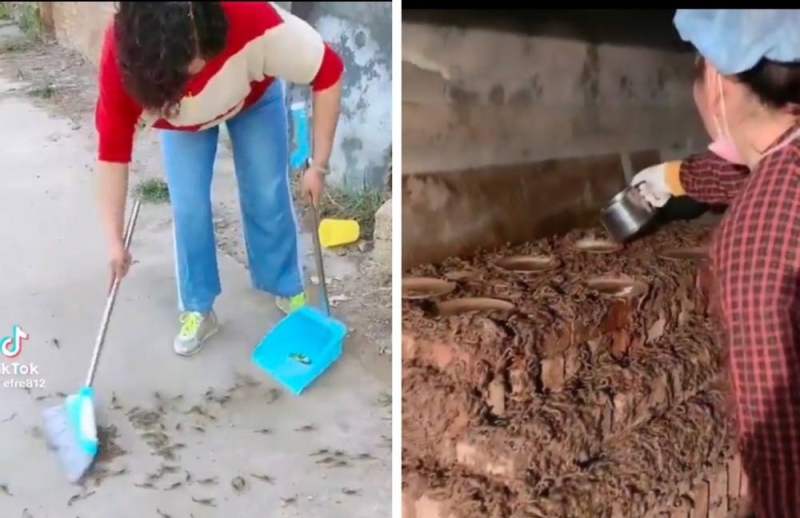 أظهر مقطع فيديو تهيئة مزرعة في الصين للإعتناء بالعقارب بشكل كبير وتغذيتها.