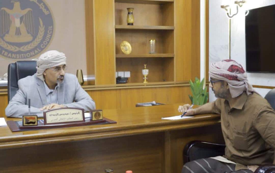 التقى الرئيس القائد عيدروس قاسم الزُبيدي رئيس المجلس الانتقالي الجنوبي، اليوم الخميس، محمد عبدالملك كرامة عبدالحافظ رئيس الهيئة التنفيذية المساعدة لشؤون مديريات وادي وصحراء حضرموت.