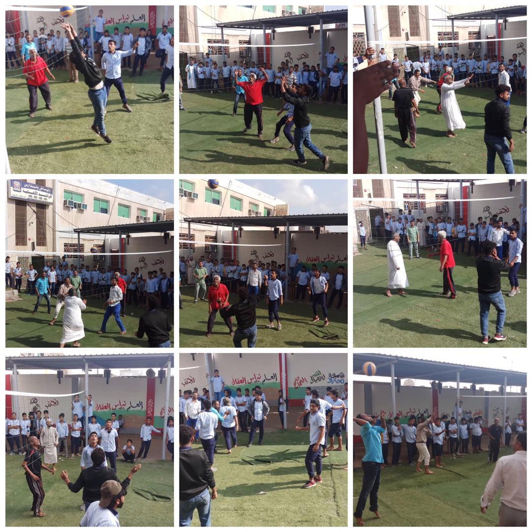 عدن : مدارس الراشد الأهلية تنظم مبارة في كرة الطائرة بين المعلمين والطلبة