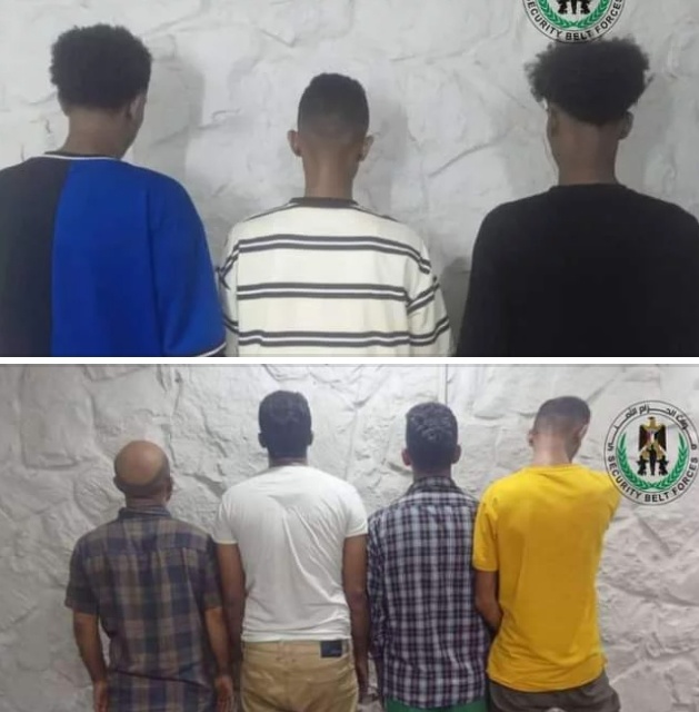 الحزام الأمني يلقي القبض على 7 متهمين بترويج وتعاطي المخدرات في البريقة
