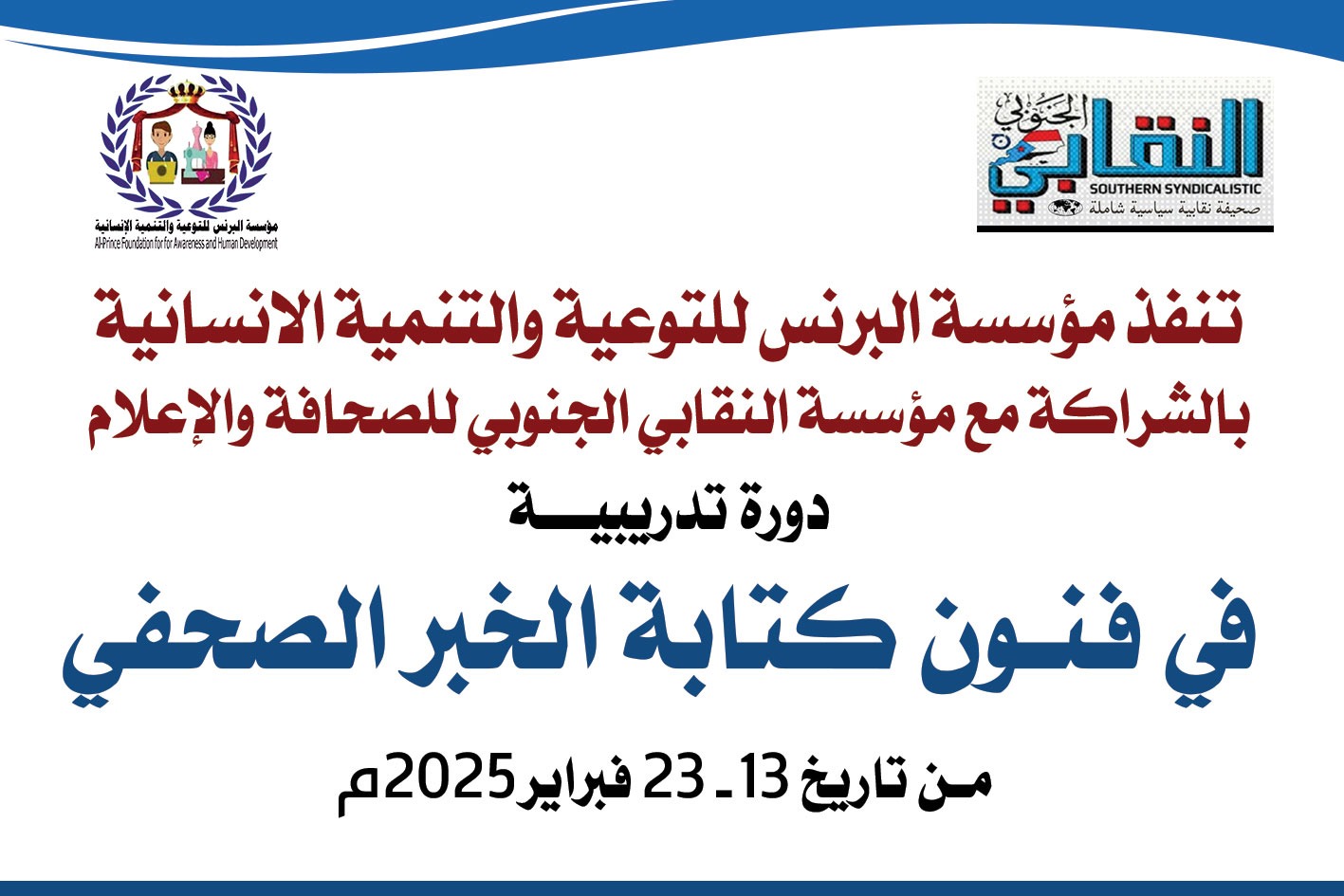 مؤسسة البرنس للتوعية والنقابي الجنوبي الإعلامية تدشنان الدورة التدريبية الخاصة بكتابة فنون  الخبر الصحافي