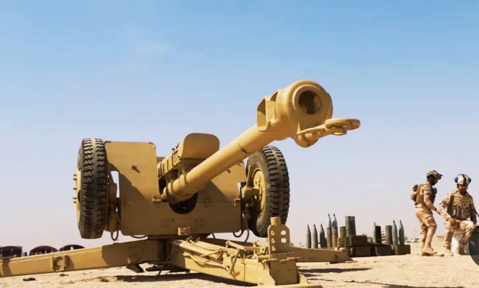 مدفع D-30 Howitzer – العيار: 122 ملم، طول السبطانة: 27 عيارًا