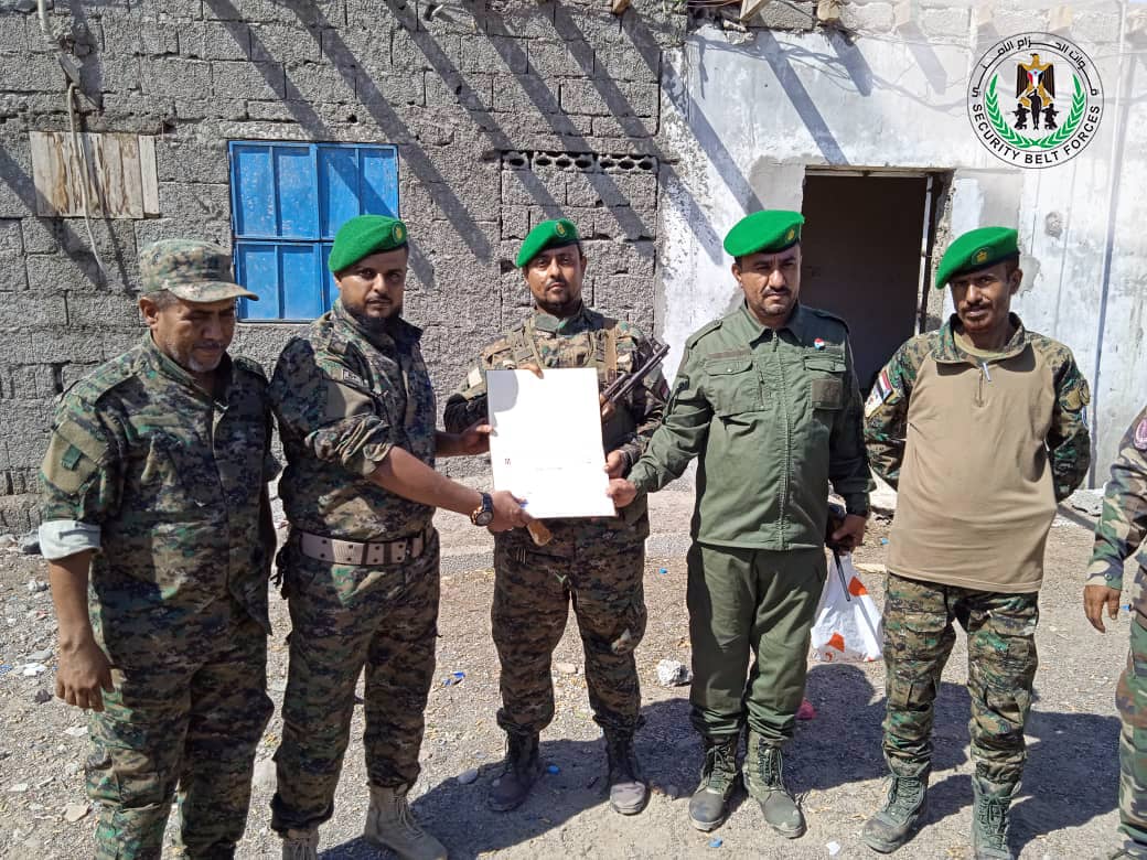 التوجيه المعنوي في قوات حزام عدن يُكرّم عددا من أفراد القطاع السادس