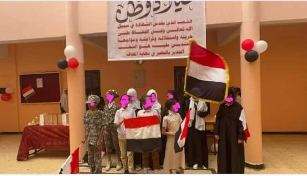 في خطوة تكشف مدى تمادي المستوطنون من ابناء الاحتلال اليمني في الجنوب، قامت مديرة احدى المدارس بمدينة المكلا بتنظيم احتفال مدرسي للطلاب تحت علم اليمن البغيض، ورفعت كذلك لافتات على طريقة مايقوم بها مشرفوا الحوثي في المدارس والمرافق العامة بموطنها اليمن، ومستفزة لأبناء حضرموت المؤمنيين بقضية الجنوب وهويته وحقه في الإستقلال والحرية والكرامة، وطالبوا بابعاد المديرة من المدرسة واعادتها إلى بلادها