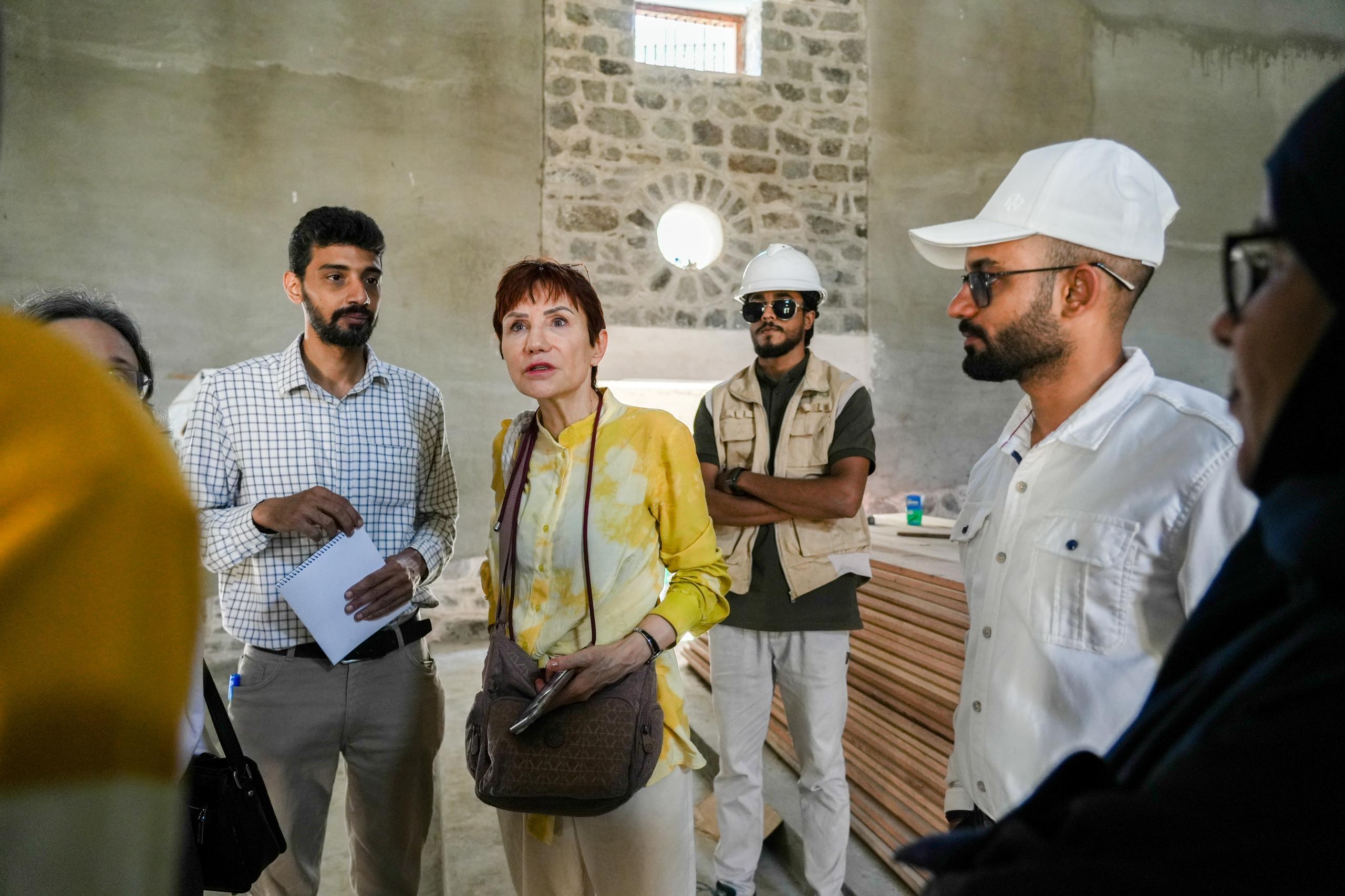 حرصاً لإحياء المعالم التاريخية..مدير صيرة والسفيرة الفرنسية يتفقدان سير أعمال ترميم سينما أروى