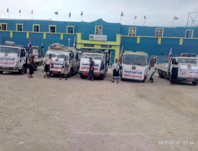 وفي تصريح صحفي أدلى به رئيس القيادة المحلية للمجلس الانتقالي بالمحافظة، الشيخ علي محسن السليماني، أعلن فيه انطلاق قافلة المعونات التي تحتوي على كمية من المواد الغذائية و المياه المعلبة والأدوية والمستلزمات الأخرى.