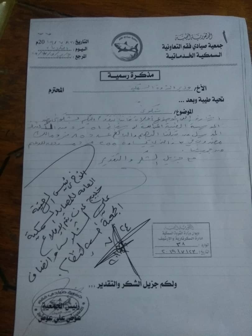 ونضراً لذلك تقدمت الجمعية بشكوى الئ وزير الثروة السمكية شاكيين لة التعامل مع افراد وهميين اذ قالت الشكوى بان هيئة مصائد خليج عدن تشرعن لهم وتقوم بتهميش جمعية صيادي فقم التي تملك وثائق رسمية من قبل السلطة المختصة في محافظة عدن و الشؤون الاجتماعية.