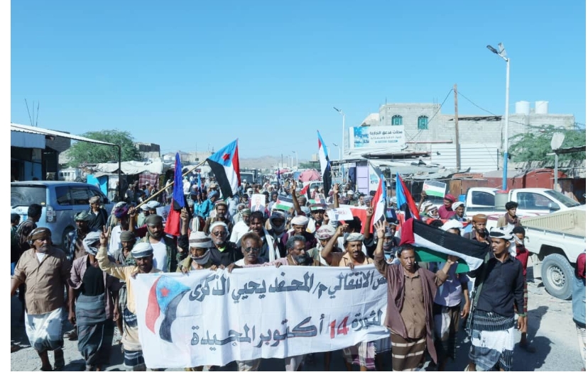 انتقالي المحفد ينظم مسيرةٌ ومهرجانا خطابيا احتفاءً بالذكرى الـ60 لثورة 14 أكتوبر الخالدة.