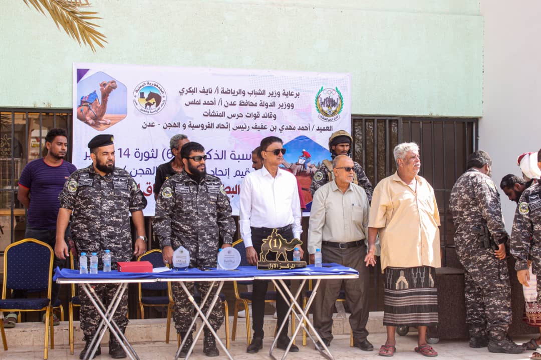 أحياء للتراث الذي لايزال عالقا في الذاكرة الرياضية الجنوبية والذي يتزامن مع الذكرى الستين لثورة ١٤ اكتوبر المجيدة .. و برعاية وزير الدولة محافظ محافظة عدن الاخ احمد حامد لملس وبحضور الأستاذ وجدان شاذلي مدير عام مكتب الشباب والرياضة بالعاصمة عدن احيا اتحاد الفروسية صباح اليوم على مضمار ملعب الشيخ عثمان في العاصمة عدن سباق الهجن السنوي الثالث.