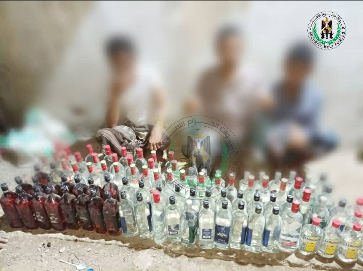 تمكنت قوات الحزام الأمني للعاصمة عدن, من إلقاء القبض على 3 متهمين بحوزتهم كمية كبيرة من الخمور في منطقة الحسوة بمديرية البريقة