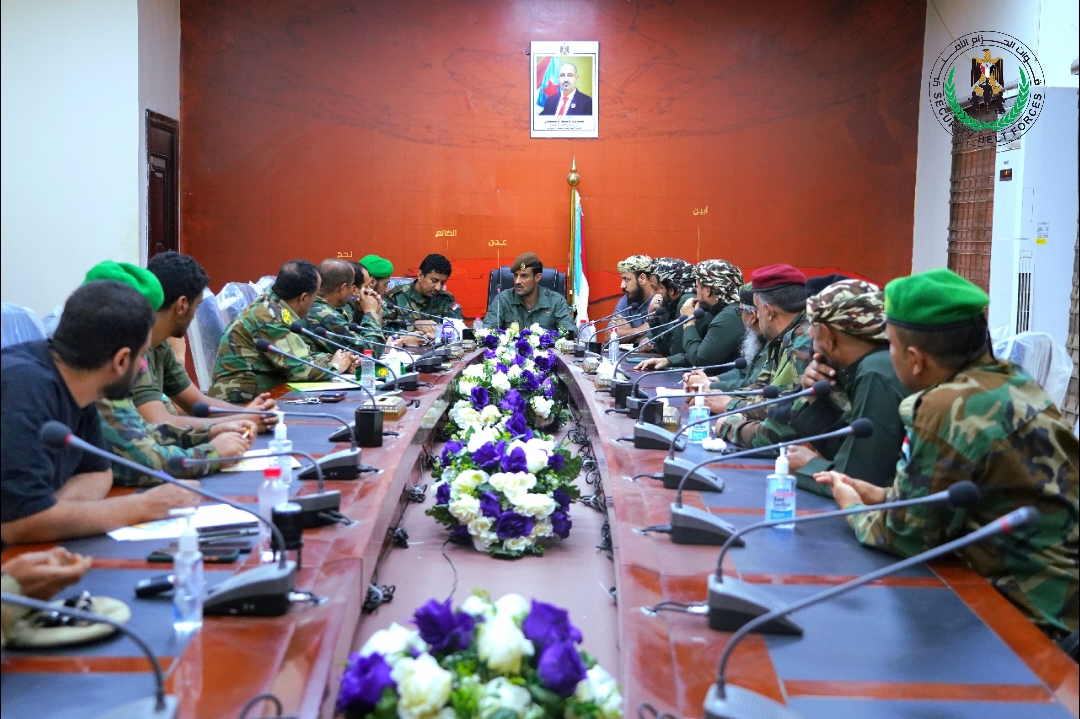 وتطرق الاجتماع إلى جملة من القضايا والمواضيع ذات الصلة بالوضع الأمني وزيادة فعالية جهود قوات الحزام الأمني.