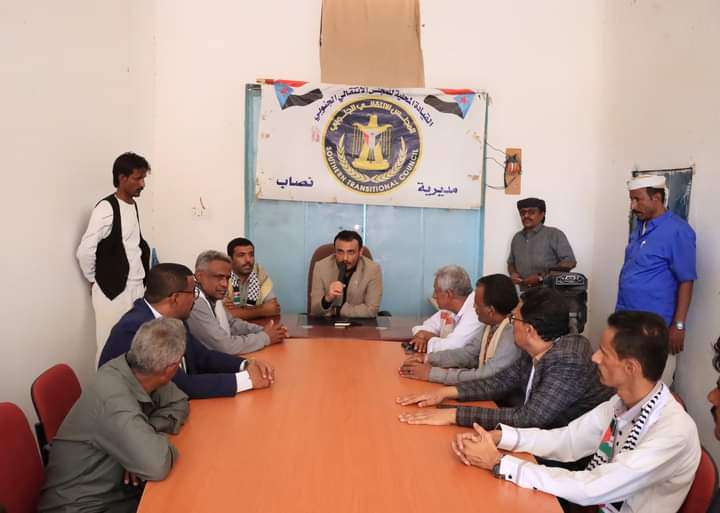 وخلال زيارته لمديرة نصاب التقى رئيس الهيئة التنفيذية بالمحافظة بأعضاء القيادة المحلية بالمديرية ونقل تحيات الرئيس القائد عيدروس قاسم الزبيدي مثمنا الدور النضالي لأبناء نصاب في محراب الثورة الوطنية الجنوبية من بعد حرب 1994 ومرورا بمرحلة الحراك الجنوبي والمجلس الانتقالي الجنوبي مشيرا إلى الدور الكبير لأبناء المديرية في حركة الاحتجاجات الشعبية المطالبة بتغيير السلطة السابقة في نهاية العام2021م.